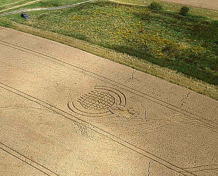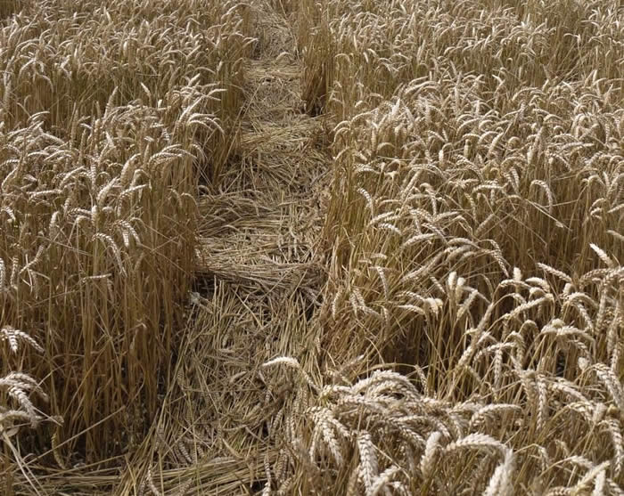 Monique Klinkenburgh: "I tried to find the farmer (James Cameron, East Kenneth) but he was not at home. I left a note at his house informing him and asking permission and went to the formation to make some groundshots. Later on I met his mother (she walked the dog close to the formation). She told me that her son will not be happy with people entering his field."