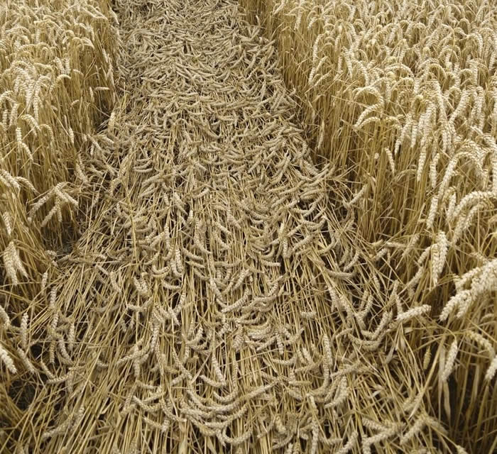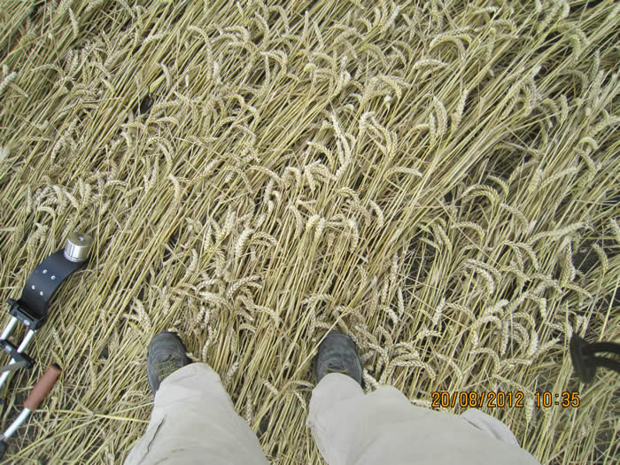 This crop-pattern was found by the farmer at around 6am on August 20. The farmer reported to us that when he discovered the circle a large 4 X 4 vehicle was parked close by the field - which turned out to be the van owned by a couple of well understood circle fakers / cereal vandals. The same vehicle was also photographed at around 9am next to the new circle of August 19.. At around 7am circle faker M Williams was filmed flying his micro-light aircraft over the circle - presumably to photograph the "mysterious" event for his pals over at the ccc website. On the ground the circle presented as crude and fully consistent with a (rushed) home made event. The farmer does not want any further visitors in this field.